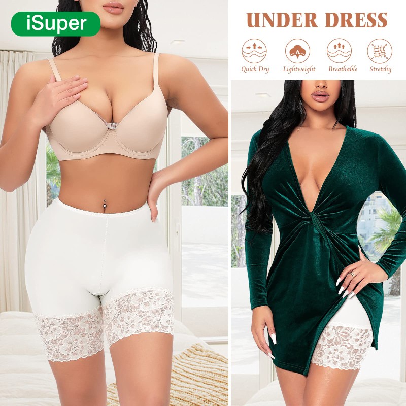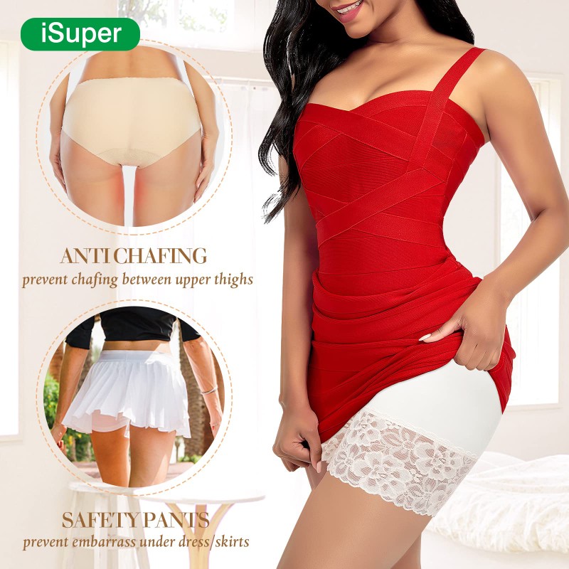 Lace Anti-chafing Shorts: If you are looking for some slip shorts for women under dress that smooth curves well while keeping thighs from rubbing together. This boyshorts panties for women is the best choice. This under dress shorts women anti chafing slip shorts with comfortable mid thigh coverage could be used as thigh bands anti chafing.