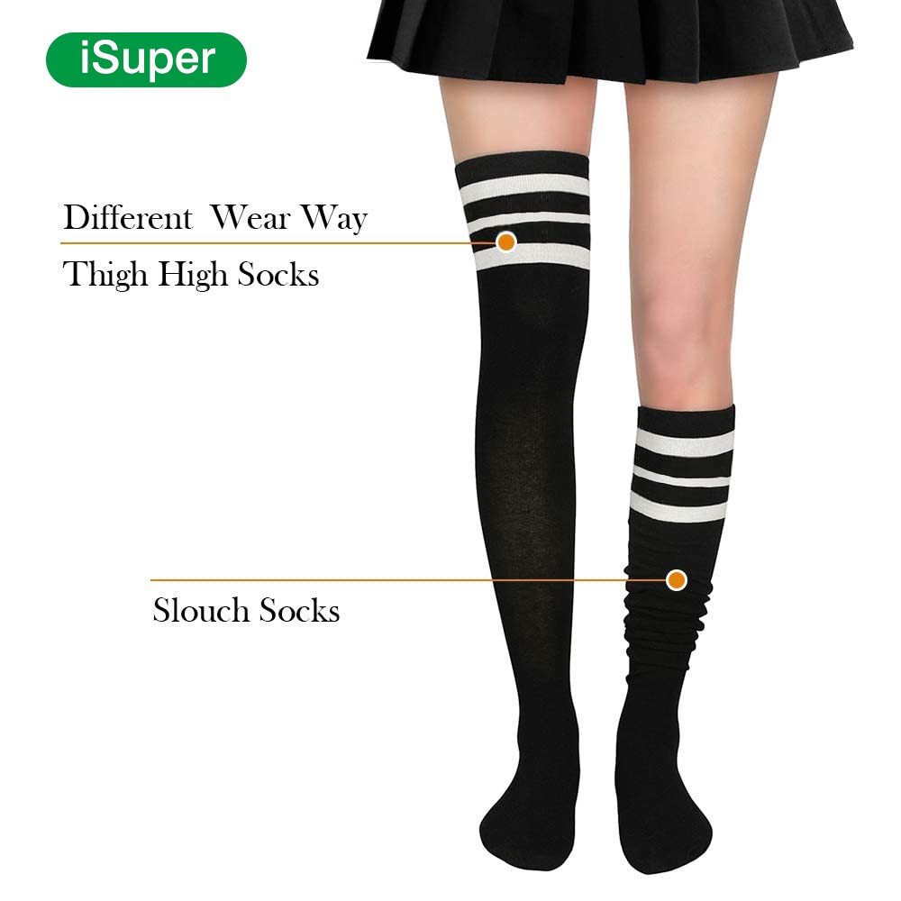 Fashion Design: These thigh high socks have three stripes at the top that make the socks look so fashion and super cute. These are must have for all girls and women and will be your favorite choice for accessorizing