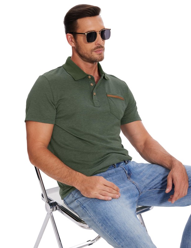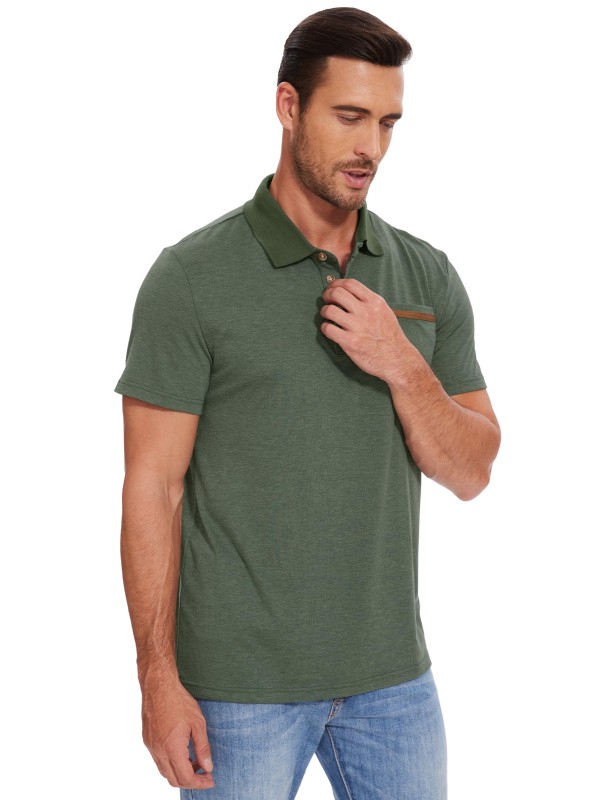 Queenspace Men's Casual Polo Shirts Classic Button Basic Short Sleeve Shirt Solid Color Tees Golf Stylish Tops